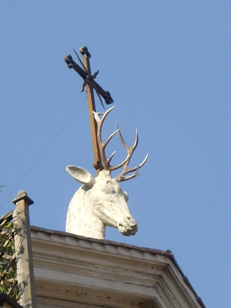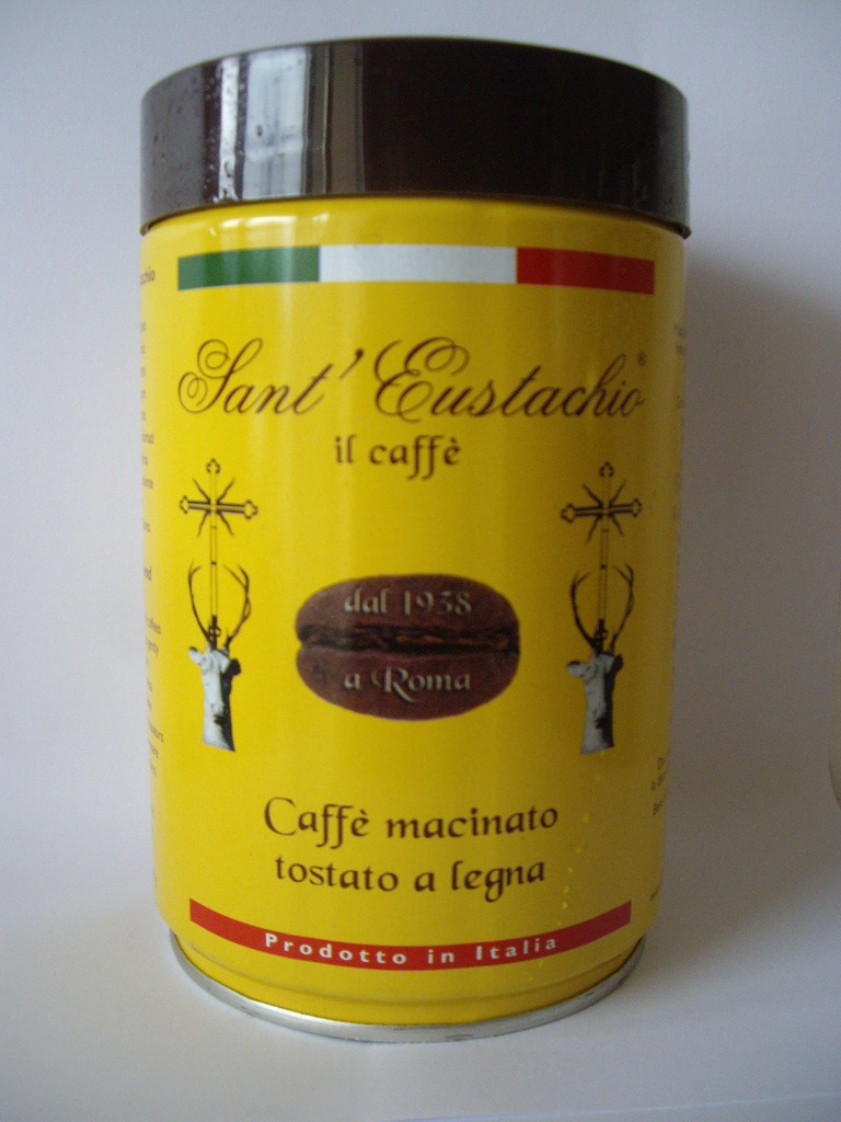 Une dernière précision : Le logo du Caffè Sant’Eustacchio est une tête de cerf surmontée d’une croix de fer. Il s’agit en fait de la photo du même cerf qui domine l’église toute proche de Saint Eustache. Celle-ci donne son nom à la place et donc au café en question !