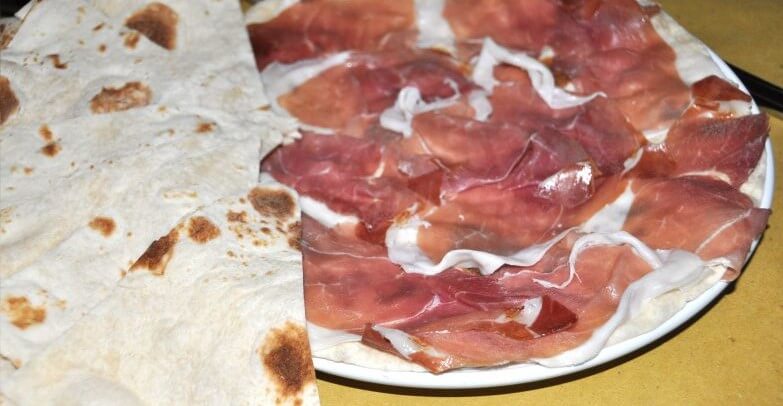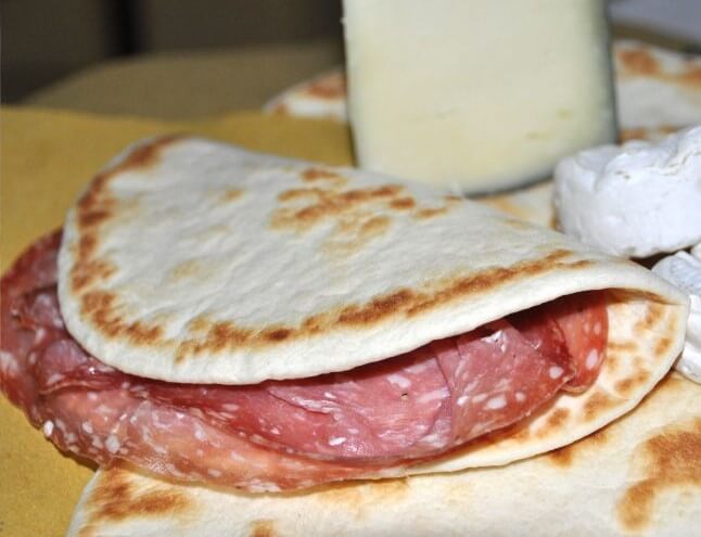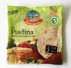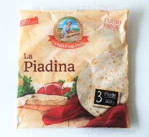 Comme son nom l’indique c’est une spécialité typique de la région d’Emilie-Romagne (centre est de l’Italie). La Piadina est une sorte de grosse crêpe ou galette (à la manière d’une tortilla mexicaine), dégustée chaude ou froide, farcie de délicieux mets authentiquement italiens : Jambon cuit, jambon cru, coppa, saucisson, mortadelle, saucisse, fromages (mozzarella, pecorino, gorgonzola, etc), tomates séchées, salade roquette, légumes grillés, mais aussi pâte à tartiner noisette/chocolat, confitures, miel etc. Pas de sauce, ce qui est peu compatible avec la texture unique de la piadina.